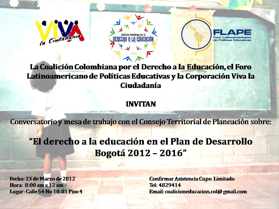 El Derecho a la Educación en el Plan de Desarrollo de Bogotá 2012 – 2016 Marzo 23 de 2012