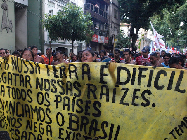 Ieri e’ iniziato ufficialmente il Forum mondiale a Belem con una manifestazione straordinaria, la piu’ grande mai vista in un Forum mondiale. La cifra di centomila data dai brasiliani e’ reale, solo che da noi oramai e’ pratica di tutti moltiplicare per 3 se non per 5 e quella di ieri sarebbe stata giudicata una manif da almeno mezzo milione di persone se non di piu’.