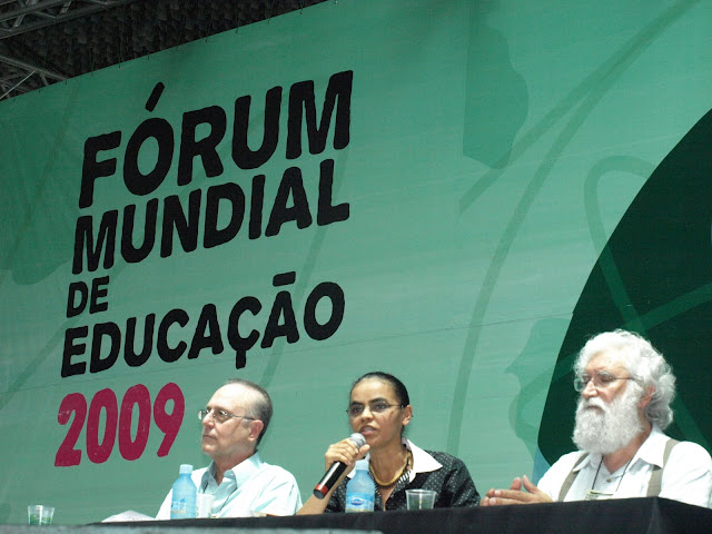 La mesa inicial de ponencias estuvieron a cargo de Moacir Gadotti, director del Instituto Paulo Freire, de Marina Silva, senadora nacional del PT y de Leonardo Boff, educador y referente indiscutido de la defensa del ambiente y de la construcción de otro mundo posible.